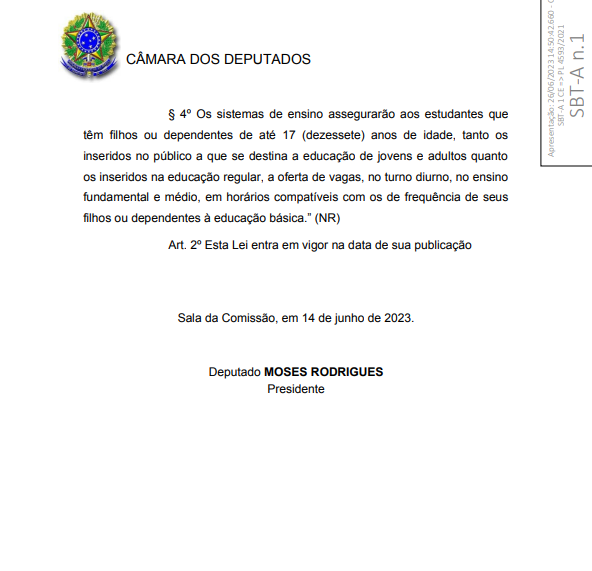 Se for confirmada pelo Senado, a nova regra alterará a Lei de Diretrizes e Bases da Educação Nacional (LDB) e poderá obrigar as redes públicas e privadas a oferecerem vagas diurnas adequadas à realidade de estudantes com responsabilidades familiares — uma mudança que busca garantir não apenas o acesso, mas também a permanência desses alunos nas salas de aula.