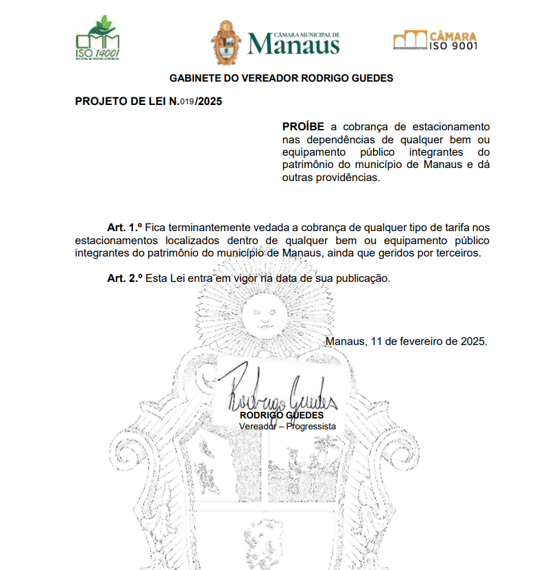 Entre os demais projetos votados e aprovados, destaca-se o de autoria do vereador Rodrigo Guedes (PP), que proíbe a cobrança de estacionamento nas dependências de qualquer bem ou equipamento público integrante do patrimônio do município de Manaus. A proposta foi aprovada em plenário e encaminhado à 2ª Comissão de Constituição, Justiça
