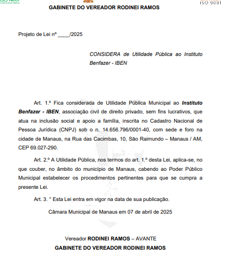 - PL 223/2025: CONSIDERA de Utilidade Pública ao Instituto Benfazer – IBEN;