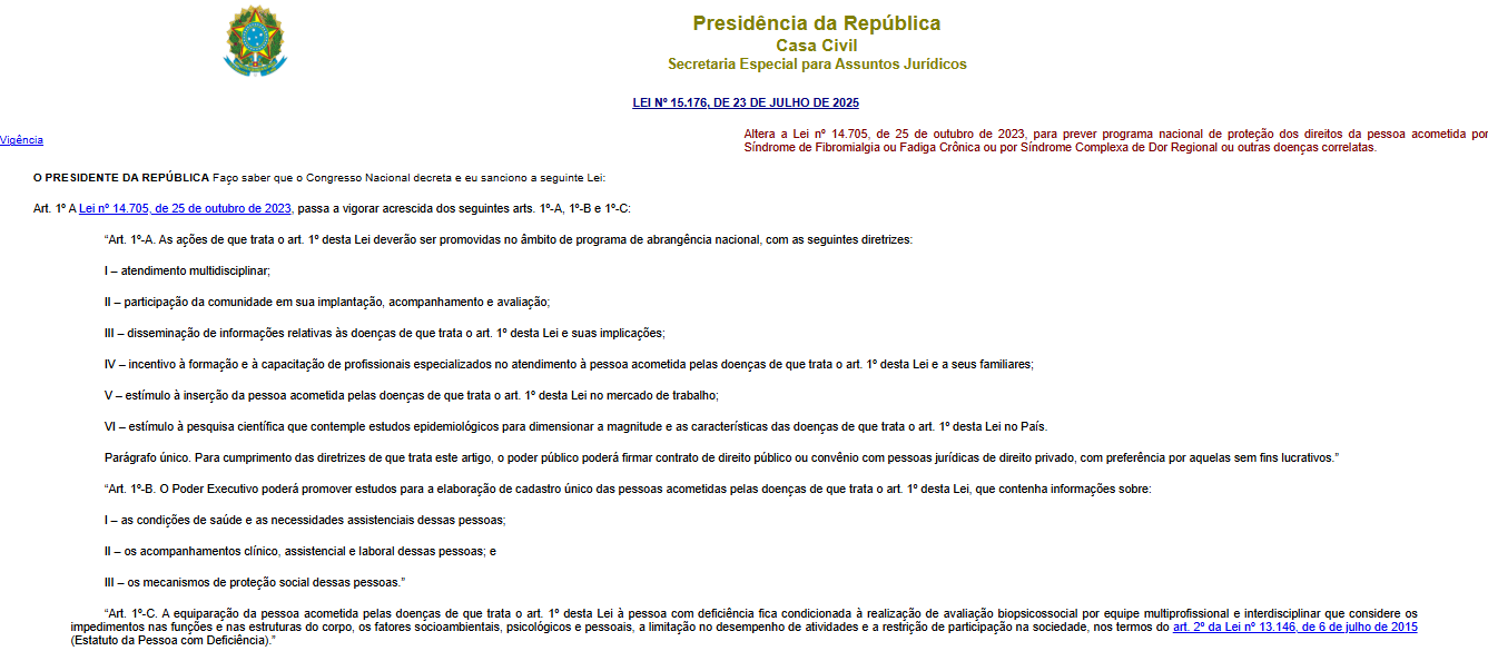 A lei também busca fortalecer a inclusão social e incentivar a criação de políticas públicas específicas, ampliando o reconhecimento institucional da fibromialgia, que afeta milhares de brasileiros e historicamente enfrentou dificuldades para ser reconhecida.