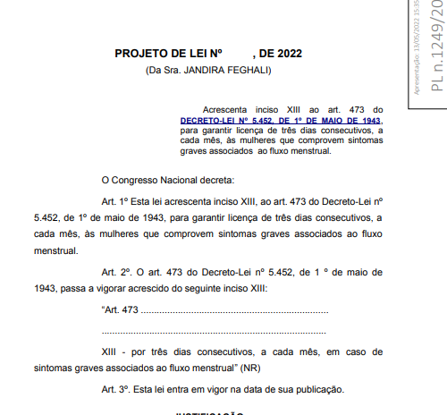 - A Consolidação das Leis do Trabalho (CLT), incluindo o afastamento menstrual entre as faltas justificadas;