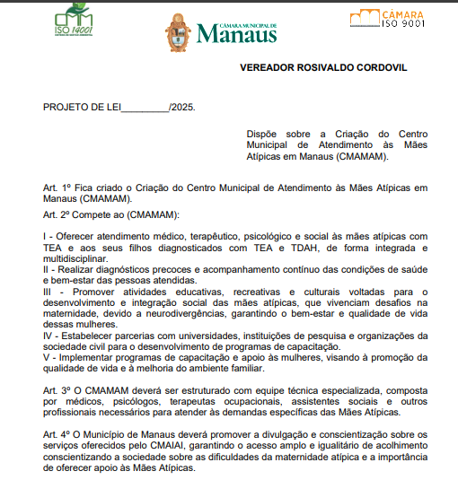 Com o debate sobre neurodivergências ocupando espaço central nas pautas sociais, cresce também a demanda por políticas públicas que deem suporte às famílias, especialmente às mães atípicas, que enfrentam jornadas marcadas por sobrecarga emocional, pouca rede de apoio e desafios diários. Nesse contexto, tramita na Câmara Municipal de Manaus (CMM) um projeto de lei que prevê a criação do Centro Municipal de Atendimento às Mães Atípicas de Manaus (CMAMAM).