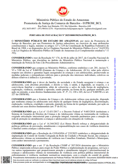 Como parte das diligências iniciais, a Promotoria de Barcelos requisitou que a Prefeitura, por meio da Secretaria Municipal de Educação, e a Câmara Municipal encaminhem cópias das leis orçamentárias em vigor e daquelas em tramitação para 2025. Também foi solicitado um relatório que comprove a compatibilidade dos recursos com as metas educacionais e o percentual de execução do Fundo de Manutenção e Desenvolvimento da Educação Básica e de Valorização dos Profissionais da Educação (Fundeb).