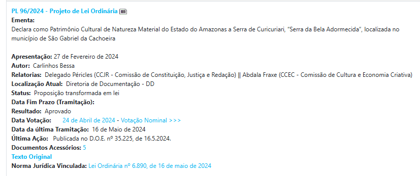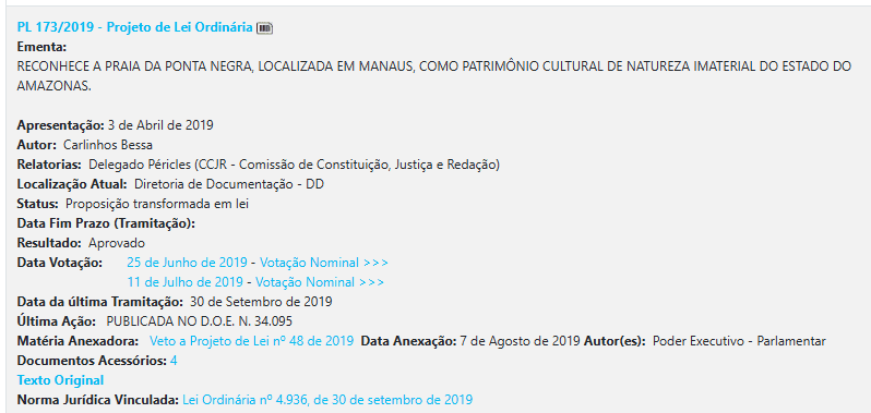 Entre os exemplos estão a criação de dias estaduais para designer gráfico, designer de interiores, escotismo e parteiras, além de uma sequência de leis que transformam eventos e locais em patrimônios culturais. Ainda que legítimas do ponto de vista cultural, essas propostas pouco dialogam com os grandes assuntos de interesse do Amazonas, como saúde, infraestrutura, segurança e desenvolvimento econômico.