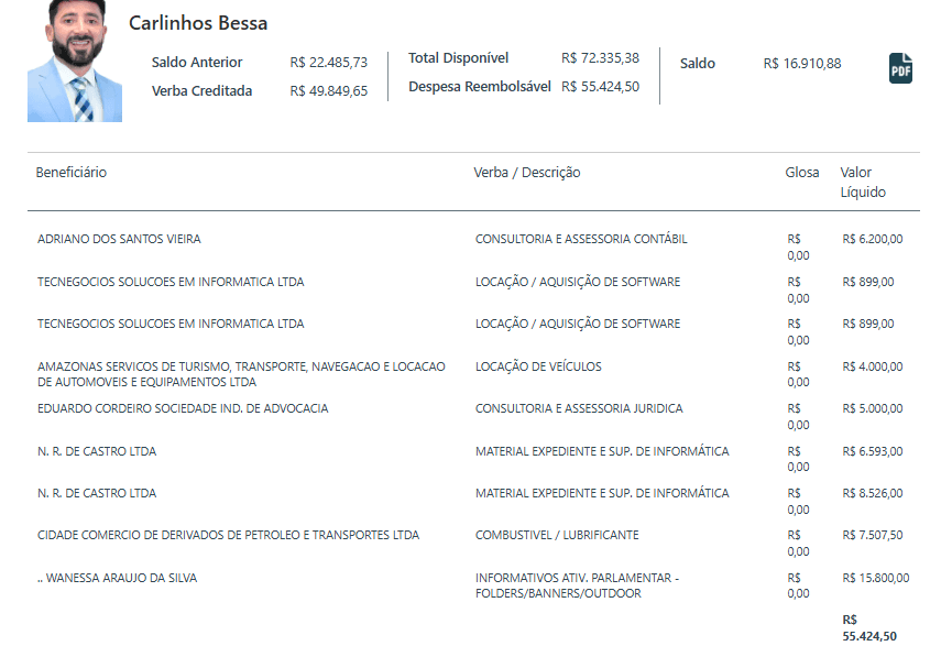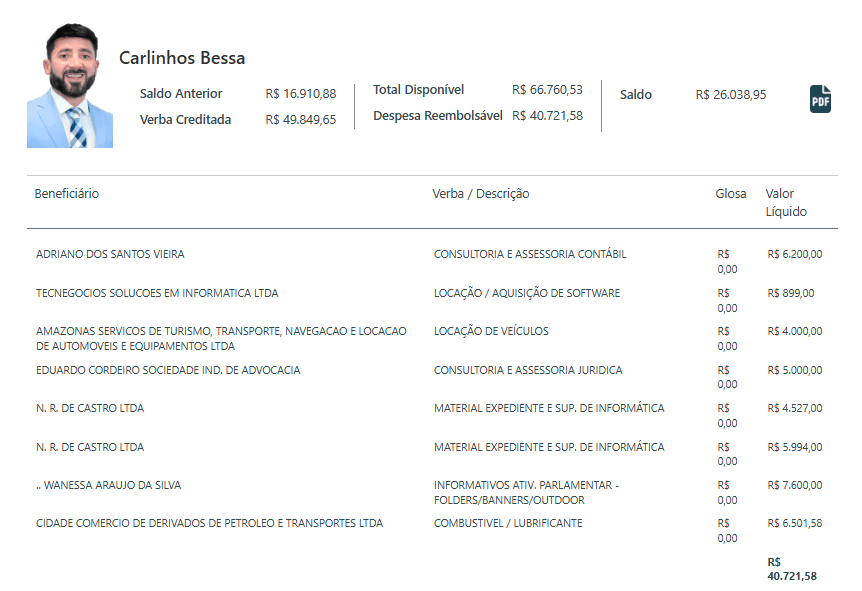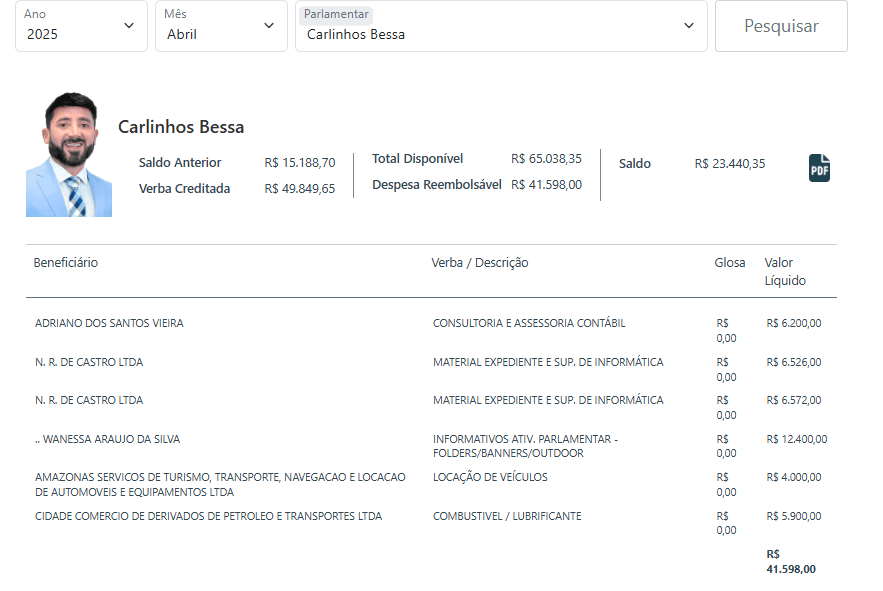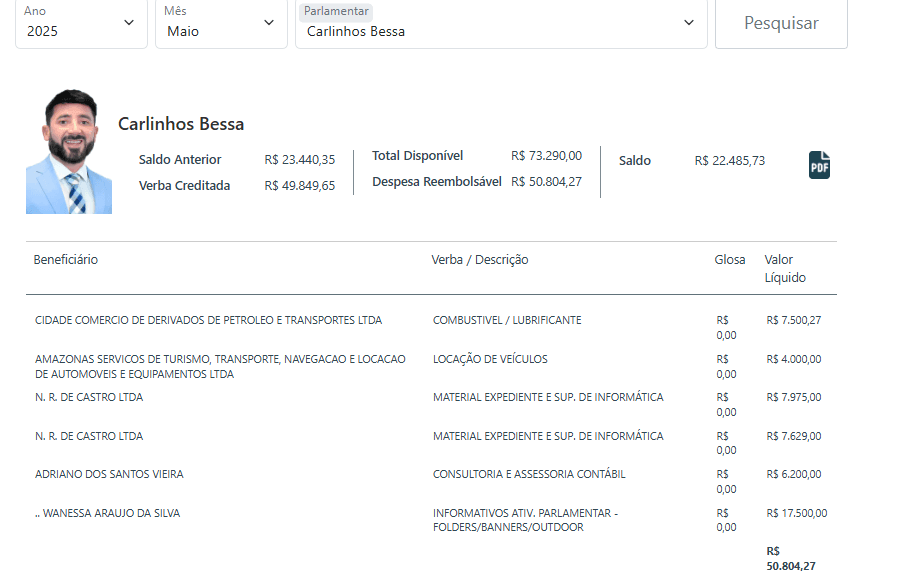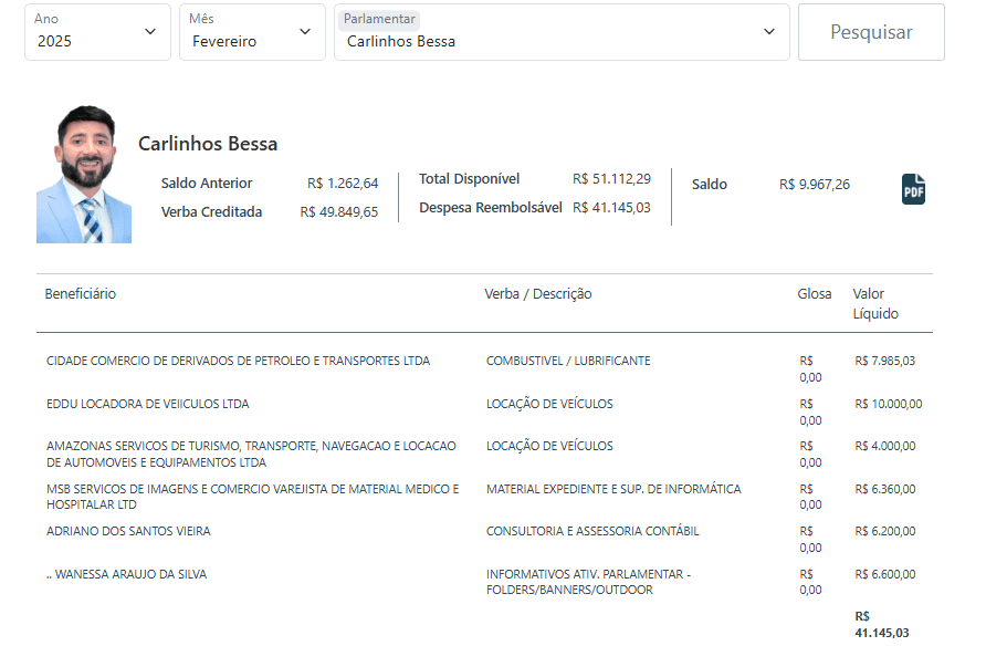 O parlamentar atè que mantém uma presença institucional e domínios dentro do que o mandato propõe, mas ainda não conseguiu transformar volume em protagonismo efetivo. Entre números elevados, o retrato que se forma é de um mandato que investe alto para se manter visível, mas que ainda busca relevância concreta no centro das decisões políticas do Amazonas.