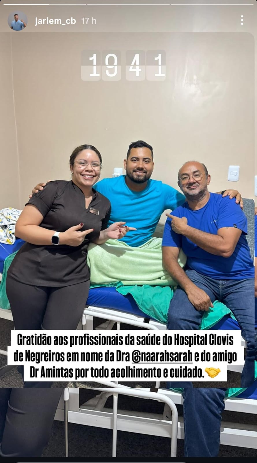 Jarlem chegou a agradecer o empenho da equipe médica durante a sua estadia na unidade. O post foi feito nos stories do Instagram após a publicação na nota oficial.