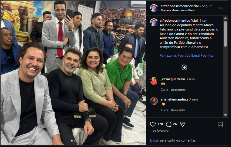 Recentemente, Alfredo Nascimento publicou uma foto com Anderson, durante uma agenda do PL-AM, com o pastor e deputado federal Marco Feliciano, que esteve em Manaus para um evento evangelico.
