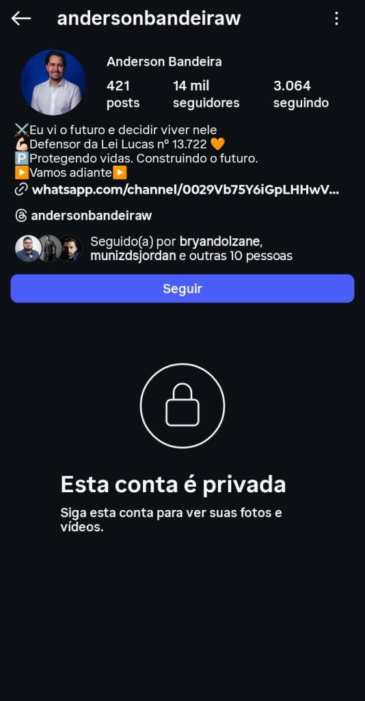 Horas antes de privar a conta, Anderson publicou nos stories uma mensagem aos seguidores: