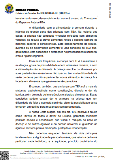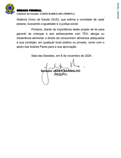 O projeto, de autoria do senador Jader Barbalho (MDB-PA), recebeu substitutivo da senadora Damares Alves (Republicanos-DF), que ampliou o alcance da proposta e destacou o caráter de inclusão da medida. Segundo a relatora, a mudança elimina barreiras que dificultam a vida de pessoas com Transtorno do Espectro Autista (TEA) e outras condições que exigem controle alimentar rigoroso.