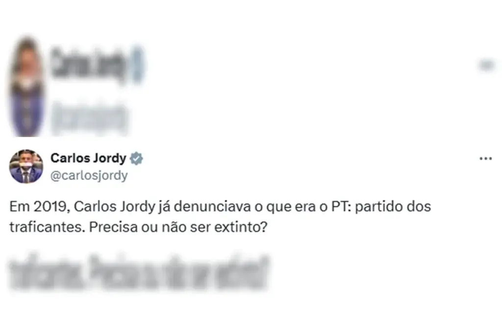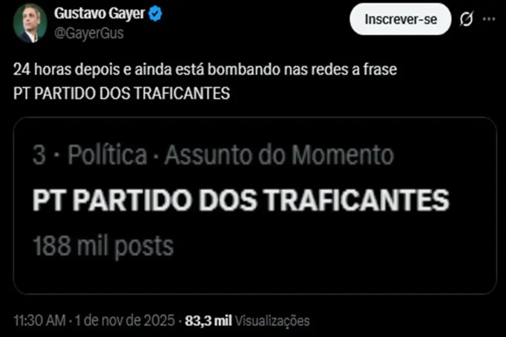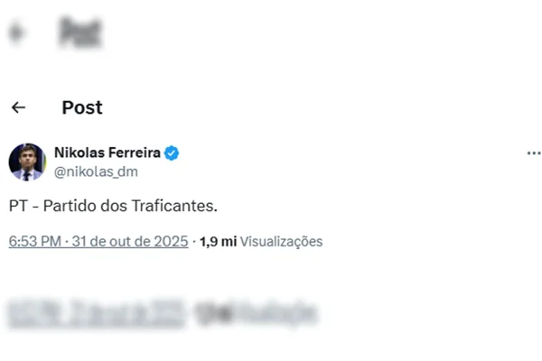 Os casos aconteceram após a megaoperação no Rio de Janeiro, na última terça-feira (28/10). No X, os parlamentares teriam criado “degradação da honra objetiva do Partido dos Trabalhadores, tentando de forma vil e repugnante associar a imagem de que o requerente é alinhado com o crime organizado”.