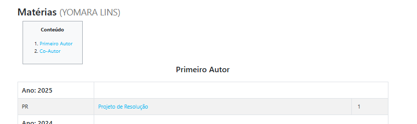A vereadora Yomara Lins aparece no topo do ranking como a menos produtiva da Casa neste ano. Até agora, apresentou apenas um Projeto de Resolução, o PR 3/2025, que cria a “Frente Parlamentar em Defesa da Família e dos Valores Cristãos – FEPACRI”.