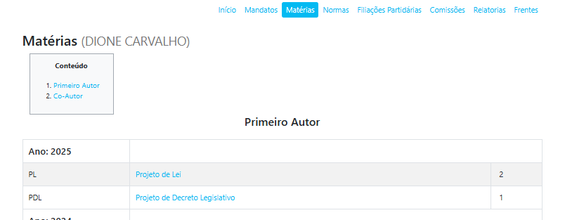 Em seu segundo mandato, o vereador Dione Carvalho protocolou dois projetos de lei em 2025: