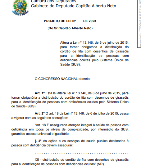 Segundo o relator, o cordão de girassol tem um papel fundamental no reconhecimento e respeito aos direitos de pessoas com deficiências invisíveis, que muitas vezes enfrentam constrangimentos e falta de compreensão ao tentar acessar serviços e exercer sua cidadania.