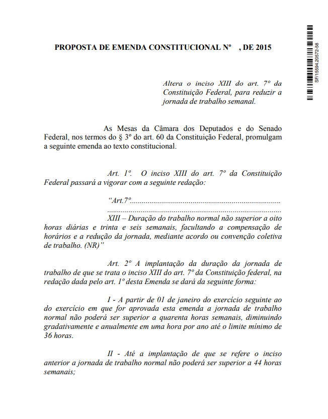 A Comissão de Constituição e Justiça (CCJ) do Senado Federal realiza, nesta terça-feira (21/10), às 10h, uma audiência pública para discutir a redução da jornada de trabalho de 44 para 36 horas semanais. A proposta está prevista na PEC 148/2015, de autoria do senador Paulo Paim (PT-RS), e volta ao centro das discussões legislativas com a participação de representantes de diversos setores.