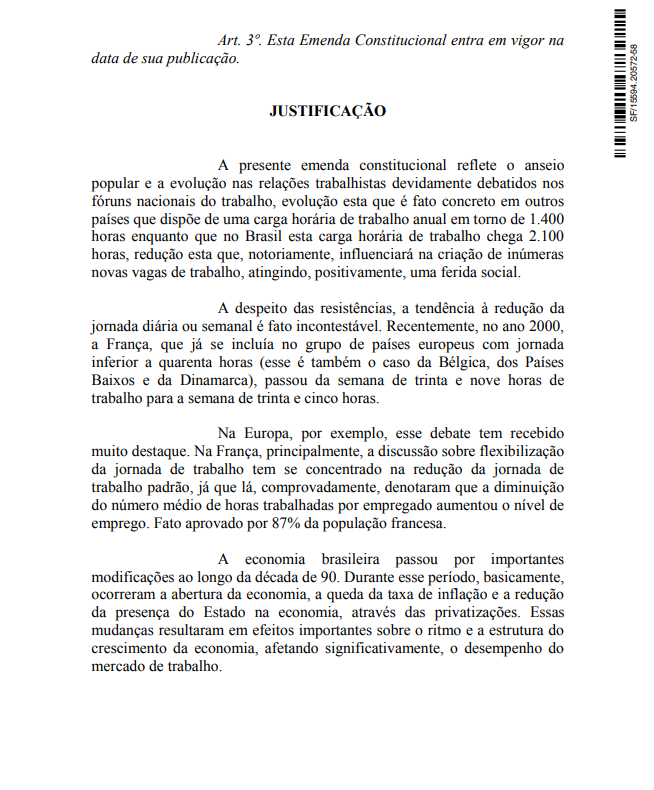 O tema da redução da jornada também tem ganhado destaque na Câmara dos Deputados. A deputada Erika Hilton (PSOL-SP) apresentou, no início de 2025, a PEC 8/2025, que propõe a mesma mudança: jornada semanal de 36 horas, sem redução de salários. A deputada também foi convidada para a audiência pública na CCJ.