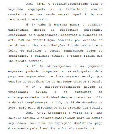 A proposta também institui o salário-paternidade, benefício que será pago ao segurado da Previdência Social, nos mesmos moldes do salário maternidade. Para empregados com carteira assinada, o pagamento será feito pela empresa, com posterior compensação junto à Previdência. Já para trabalhadores avulsos, empregados domésticos, contribuintes individuais e segurados especiais, o benefício será pago diretamente pelo INSS, respeitados os critérios previstos em lei.