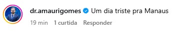 Amauri Gomes, por sua vez, comentou: “Um dia triste pra Manaus”.