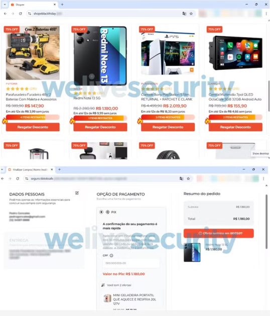 De acordo com a ESET, os links fraudulentos circulam principalmente por anúncios em redes sociais, SMS e e-mails. As páginas falsas também solicitam dados pessoais antes do pagamento, o que pode ser usado em outros tipos de fraude.
