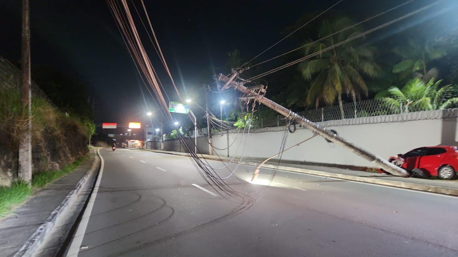 Por volta das 4h50, um carro modelo Argo vermelho colidiu violentamente contra um poste de energia elétrica, que foi completamente derrubado com o impacto. Segundo informações preliminares, o motorista teria cochilado ao volante, perdendo o controle do veículo.