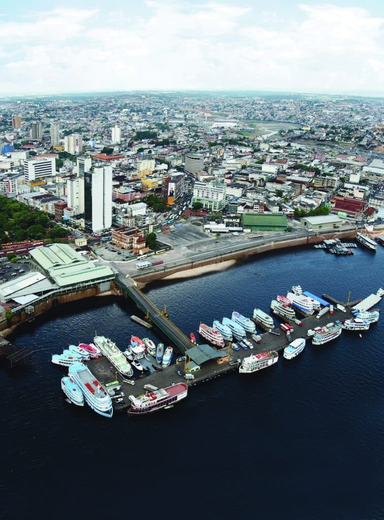 O Porto de Manaus começou a tomar forma em 1899, quando o governo federal abriu concorrência para sua construção, que foi contratada em 1900 pela empresa inglesa B. Rymkiewicz & Company, marcando o início de um porto moderno para a então capital da Amazônia. Ao longo das décadas, o conjunto portuário foi expandido e, em 1987, teve parte de sua estrutura tombada pelo IPHAN como Patrimônio Histórico Nacional, englobando cais, armazéns, pontes e edifícios administrativos.