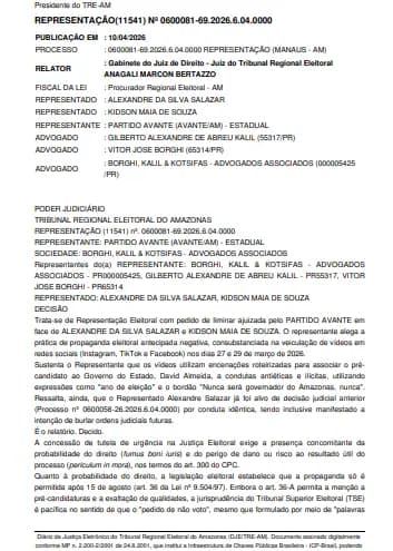 A manifestação ocorre após decisão liminar do Tribunal Regional Eleitoral do Amazonas, que determinou a retirada dos conteúdos no prazo de 24 horas, sob pena de multa diária de R$ 20 mil. A Justiça entendeu que os vídeos configuram propaganda eleitoral antecipada negativa, ao ultrapassar os limites da crítica política e associar o pré-candidato a práticas ilícitas.