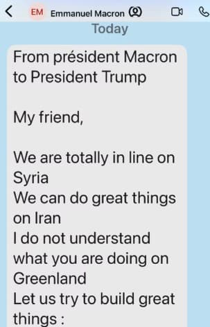 Na mensagem, Macron afirma não compreender a iniciativa dos EUA envolvendo a Groenlândia e propõe uma articulação diplomática para tratar do tema. “Não entendo o que você está fazendo”, escreveu o presidente francês, ao sugerir esforços conjuntos para evitar o agravamento da crise.