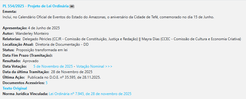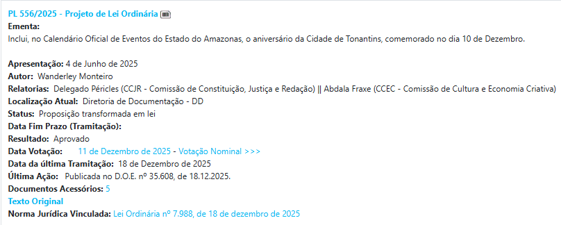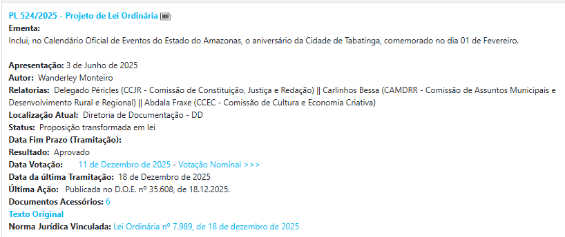 Em 2025, esse tipo de proposição passou a incluir também aniversários de municípios do interior do Amazonas, ampliando o número de homenagens protocoladas.